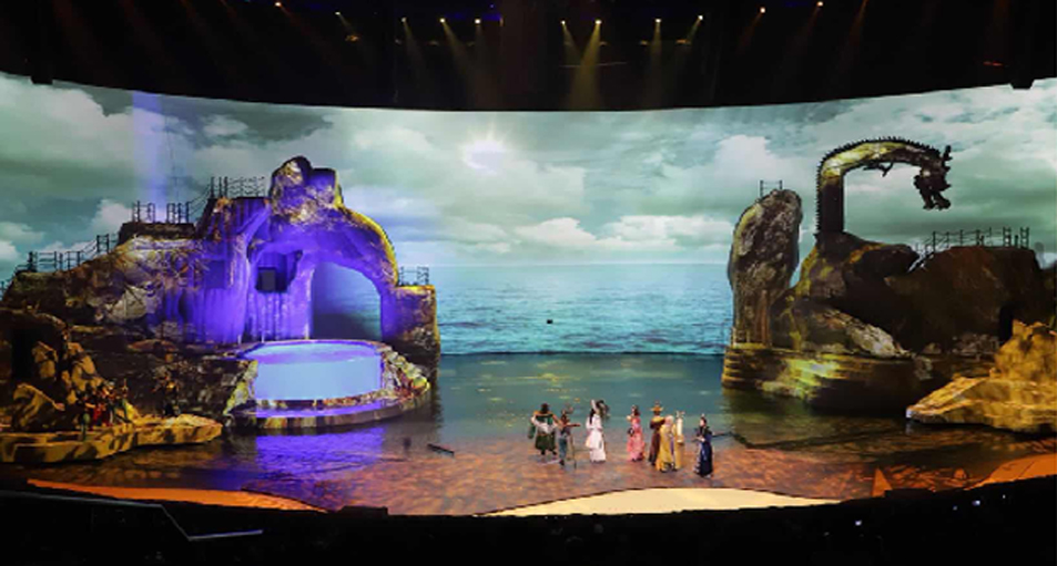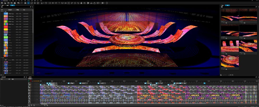 根據演出、節目內容的需要,利用視頻成像的展示手段達到不同的影像效果。采用LED顯示屏、投影機等豐富的視頻顯示載體營造舞美特效。